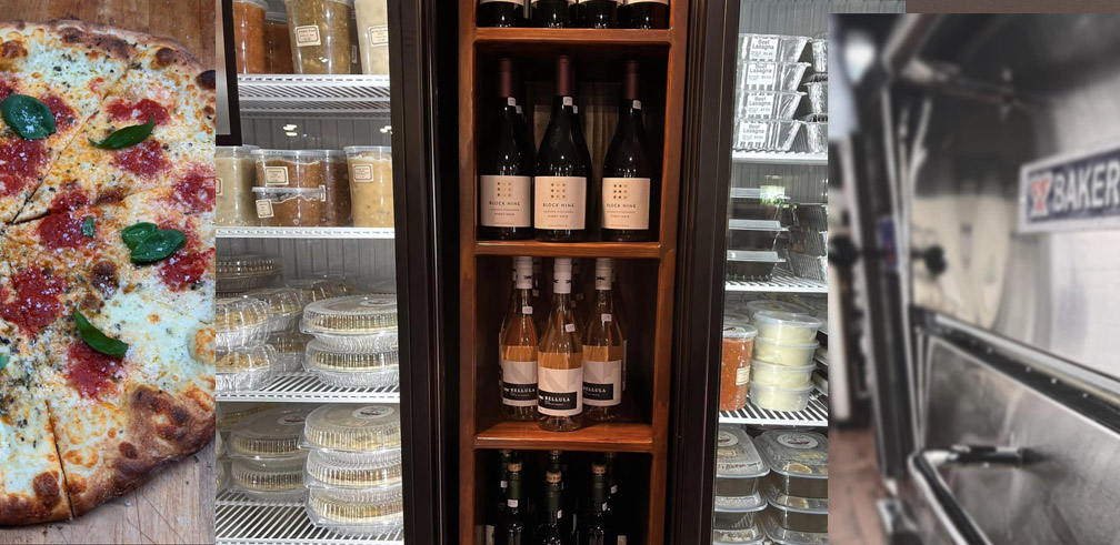 For takeout, we offer fresh and frozen foods prepared in our kitchen, such as vegetables, meats, quiches, homemade pies, daily soups, and homemade bread. We also have fresh seafood and meats, as well as fresh produce from local farms. We also offer pantry items from local vendors, mostly from North Carolina. We are keeping the former "coffee counter" as a community counter for locals to sit, chat, drink coffee, and enjoy fresh soup or pizza. It is all takeout!